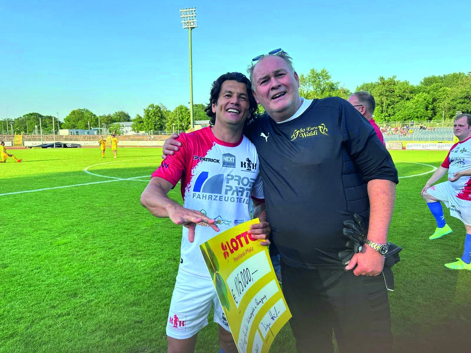 Das Endergebnis – 13:9 für die Lotto-Elf – geriet dabei fast zur Nebensache, denn alle waren angetreten, um Nelsons Schule zu unterstützen. Doch der größte Moment des Tages war zweifellos, als Reiner Meutsch uns mit einem Scheck über 105.000 Euro überraschte. Diese Spende machte es möglich, nicht nur die Schule in Paraguay zu bauen, sondern auch eine weitere in Ruanda.