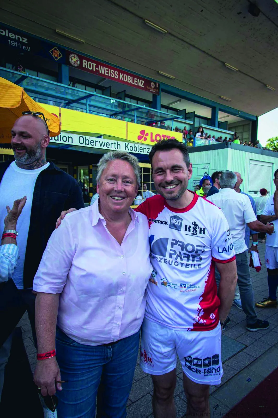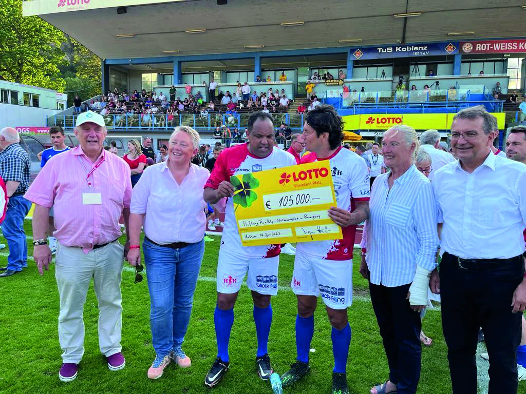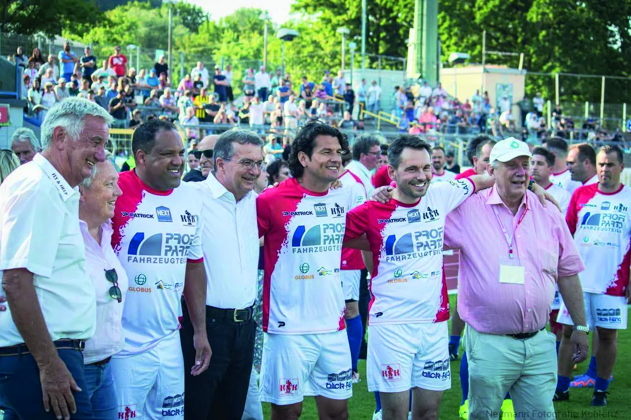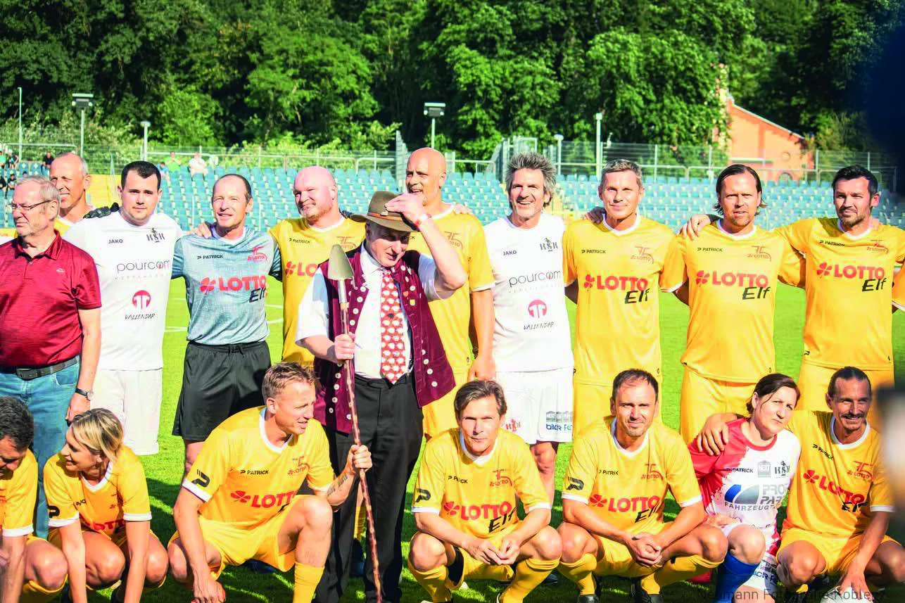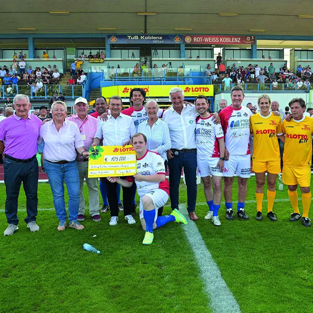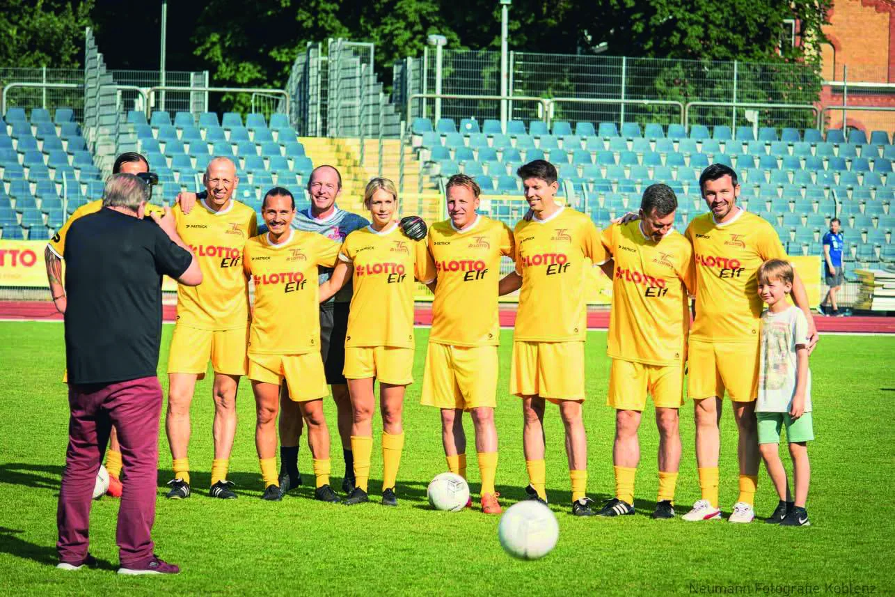 Schließlich hatten wir eine beeindruckende Aufstellung: rund 50 Stars in unserer Mannschaft und die komplette Lotto-Elf auf der Gegenseite. Die Stadt Koblenz unterstützte uns tatkräftig, und sogar der Oberbürgermeister schnürte die Fußballschuhe, um mit auf dem Platz zu stehen. So ein Staraufgebot hatte das Koblenzer Stadion Oberwerth wohl noch nie gesehen.